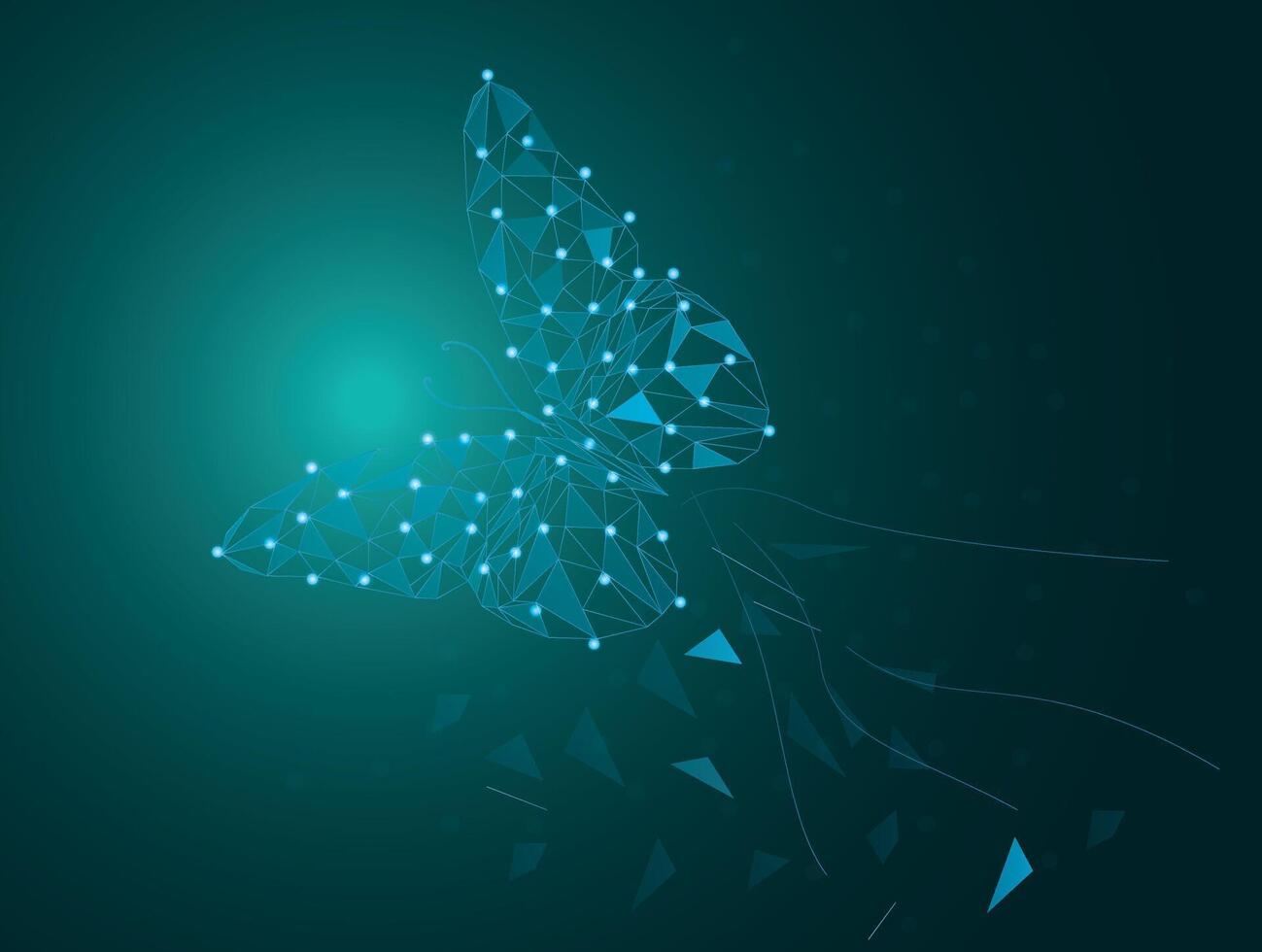 Butterfly composed of polygon. Low poly vector illustration of a starry sky or Comos. The digital flyer consists of lines, dots and shapes. Wireframe technology light connection structure. Free Vector
