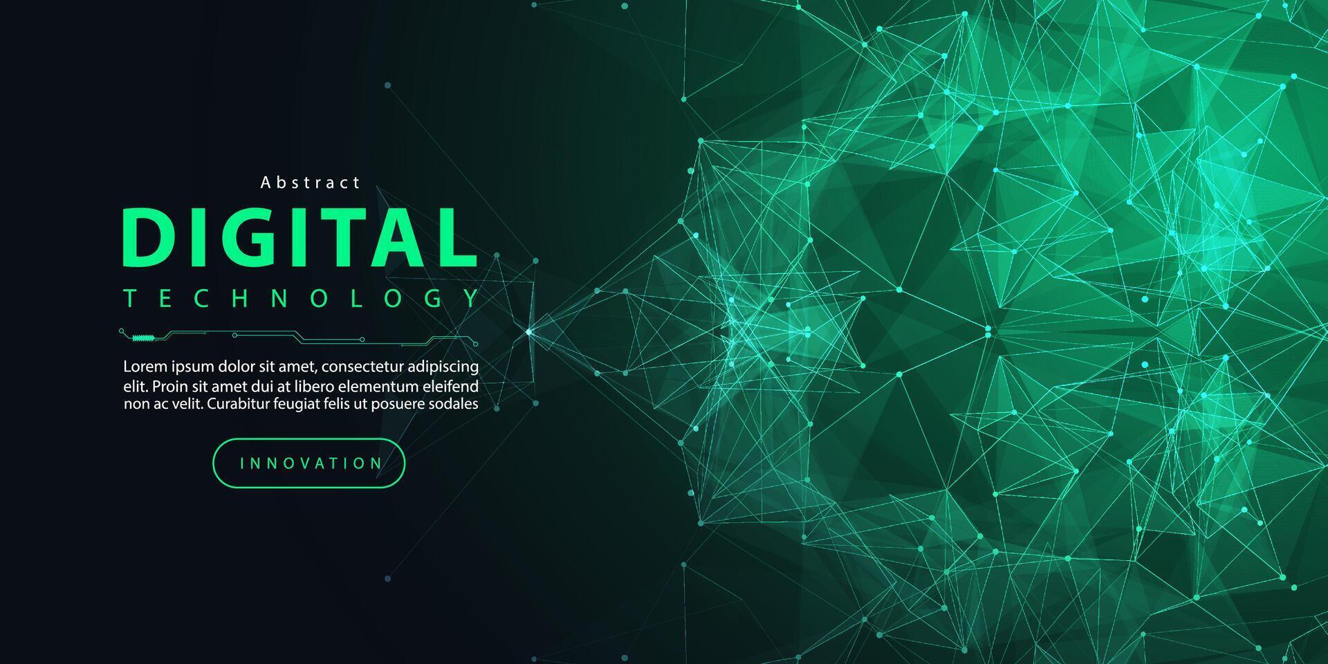 Technology digital futuristic internet network connection black green background, blue abstract cyber information communication, Ai big data science, innovation future tech line illustration vector 3d Pro Vector