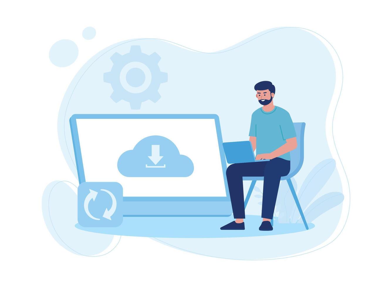 man by synchronizing cloud data concept flat illustration Pro Vector