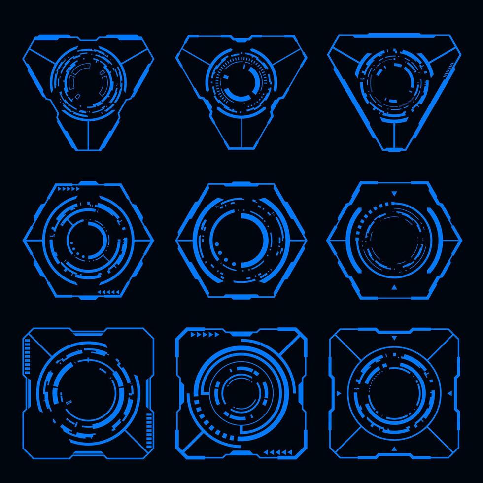 Vector set futuristic frame HUD technology cyberpunk design element. Pro Vector