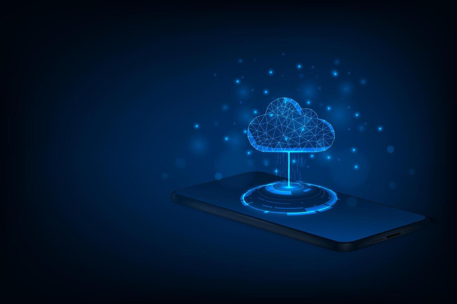 Vector abstract futuristic cloud computing technology with smartphone. Template banner design. Pro Vector
