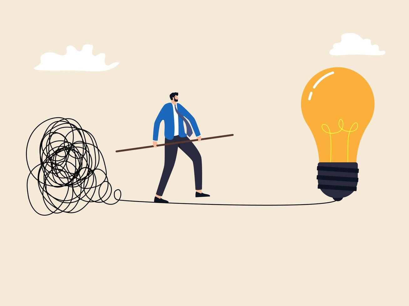 Smart businessman in a line of chaos, always thinking in balance to get ideas and solve problems Pro Vector