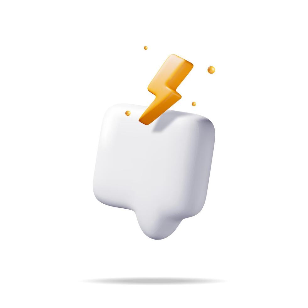 3D White Blank Speech Bubble with Lightning Isolated. Render Chat Balloon Pin with Power Energy. Notification Shape Mockup. Communication, Web, Social Network Media, App Button. Vector Illustration Pro Vector