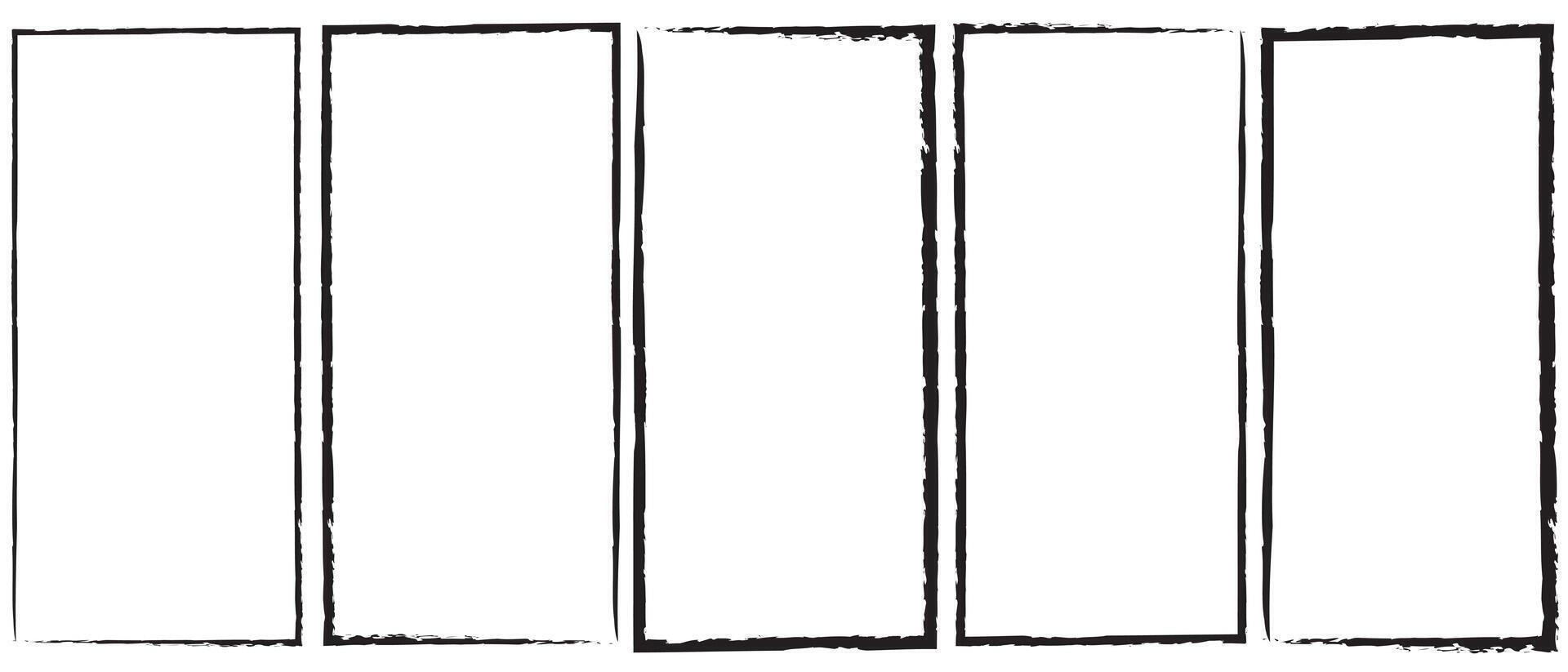 Grunge square and rectangle frame, stories and social network media. Template with brush stroke. Rectangular border with grunge overlay. Set of vector illustrations isolated on white background. Pro Vector