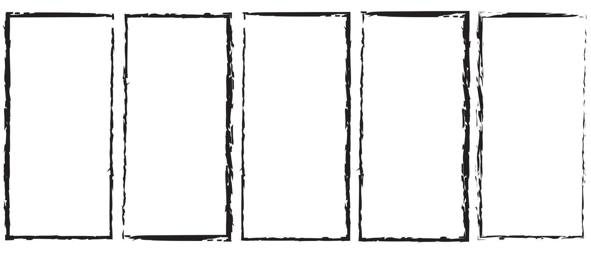 Grunge square and rectangle frame, stories and social network media. Template with brush stroke. Rectangular border with grunge overlay. Set of vector illustrations isolated on white background. Pro Vector