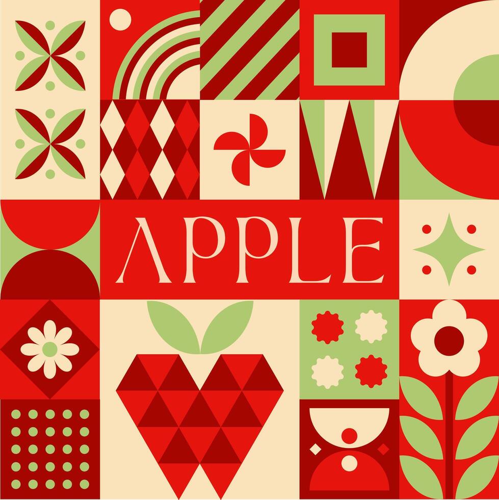 Apple Fruit seamless pattern in scandinavian style postcard with Retro clean concept design vector
