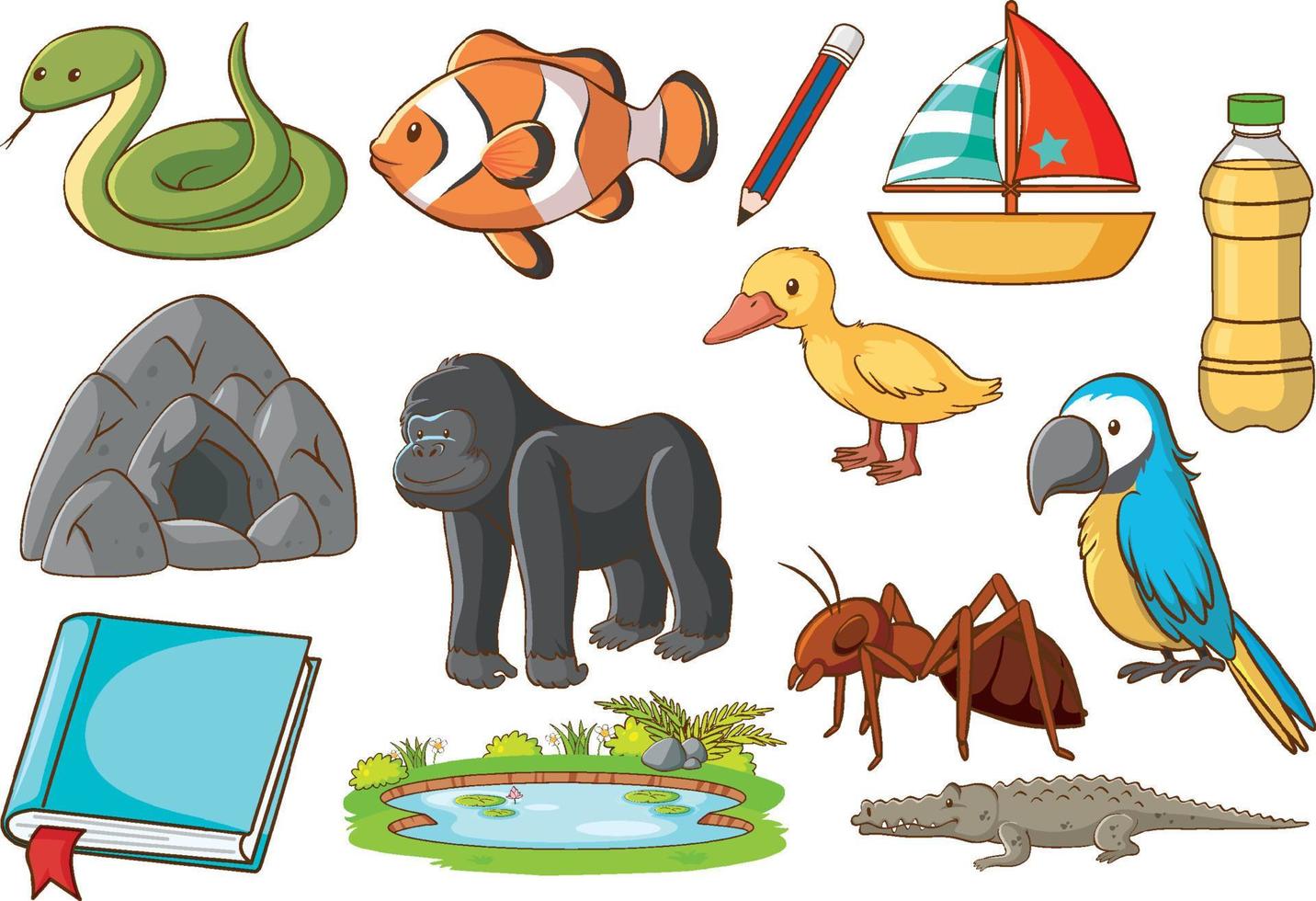 Set of various animals and objects vector