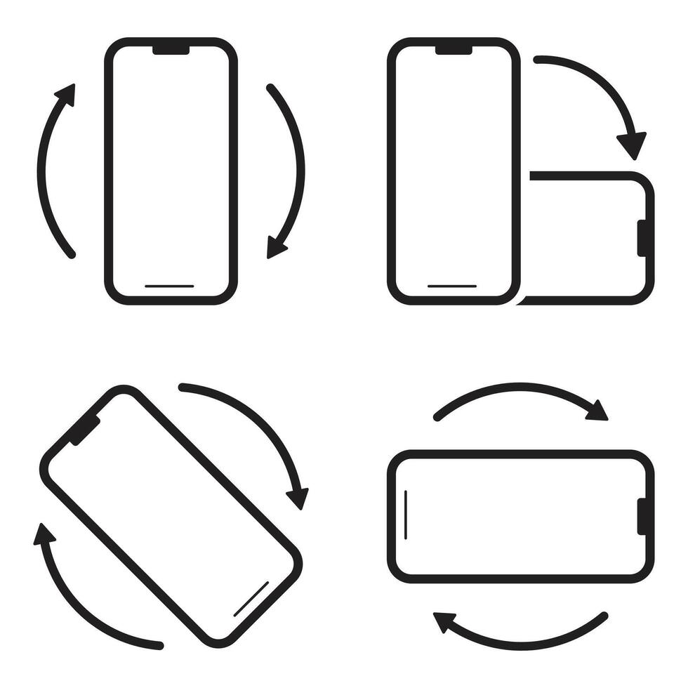 mobile phone rotate icon set in line style device rotation with arrow simple black style symbol sign for app and website or video vector illustration Pro Vector