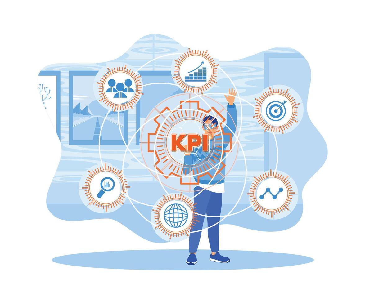 Young men using business, technology, internet and network concepts. Smart KPI concept.3630. Pro Vector