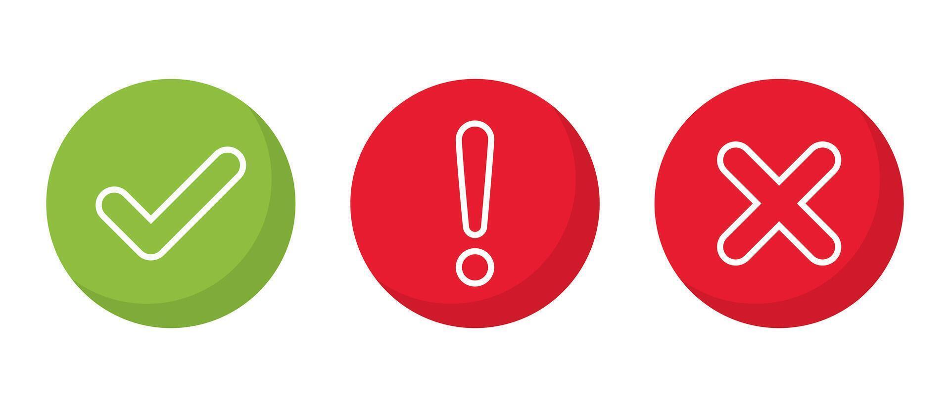 Check mark, exclamation and x cross mark line icon vector. Checkmark, warning, and x letter sign symbol on circle background Pro Vector