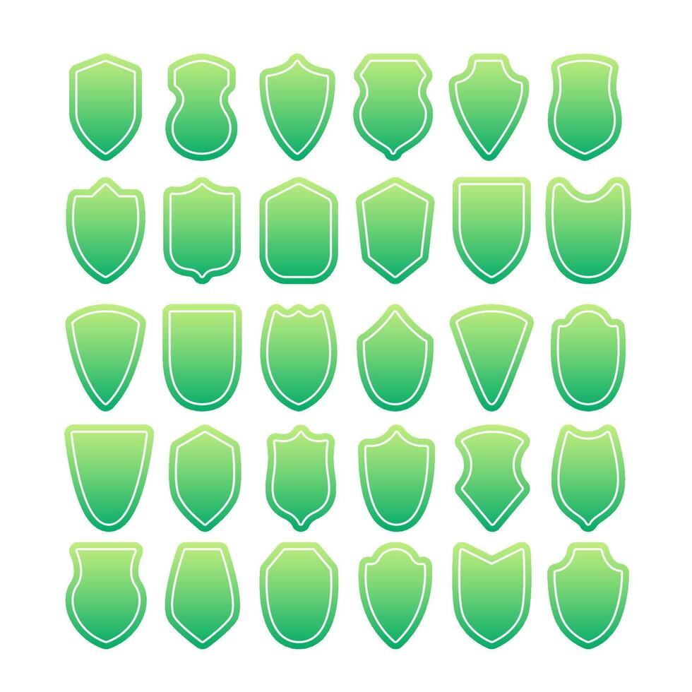 Collection of green shield shapes with checkmarks, representing safety, security, and verification Pro Vector