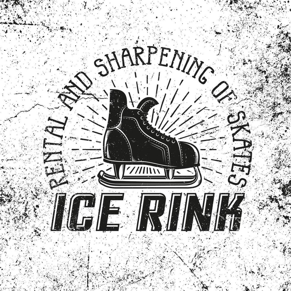 Retro hockey skate as an emblem for the ice rink. Grange texture on a separate layer and easily deactivated. Pro Vector