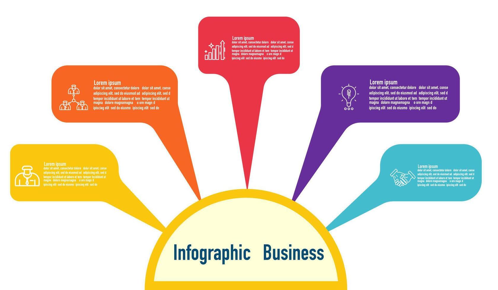 Infographic template step guide for business information presentation. Vector banner square and icons elements. Modern workflow diagrams. Report option plan 5 topics