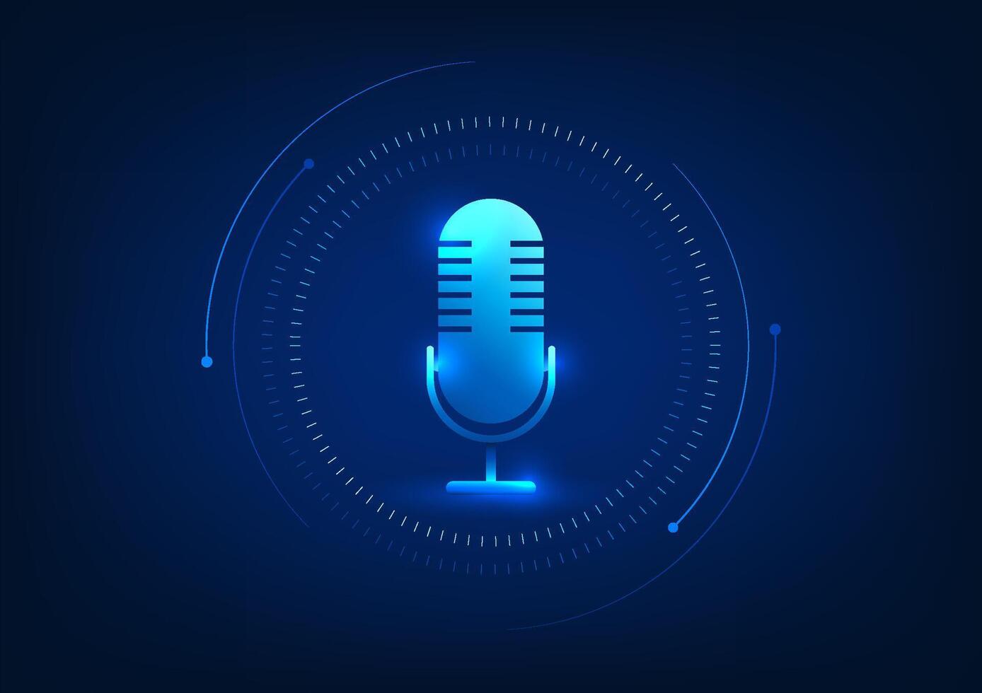 Microphone technology background, microphone inside high tech circle Concept of a device that receives sound and converts it into an electrical signal. to record or amplify sound Pro Vector
