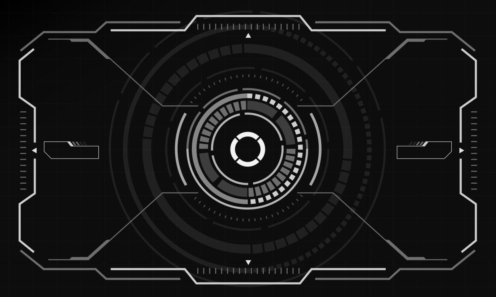 HUD sci-fi interface screen view white circular geometric design virtual reality futuristic technology creative display on red vector Pro Vector
