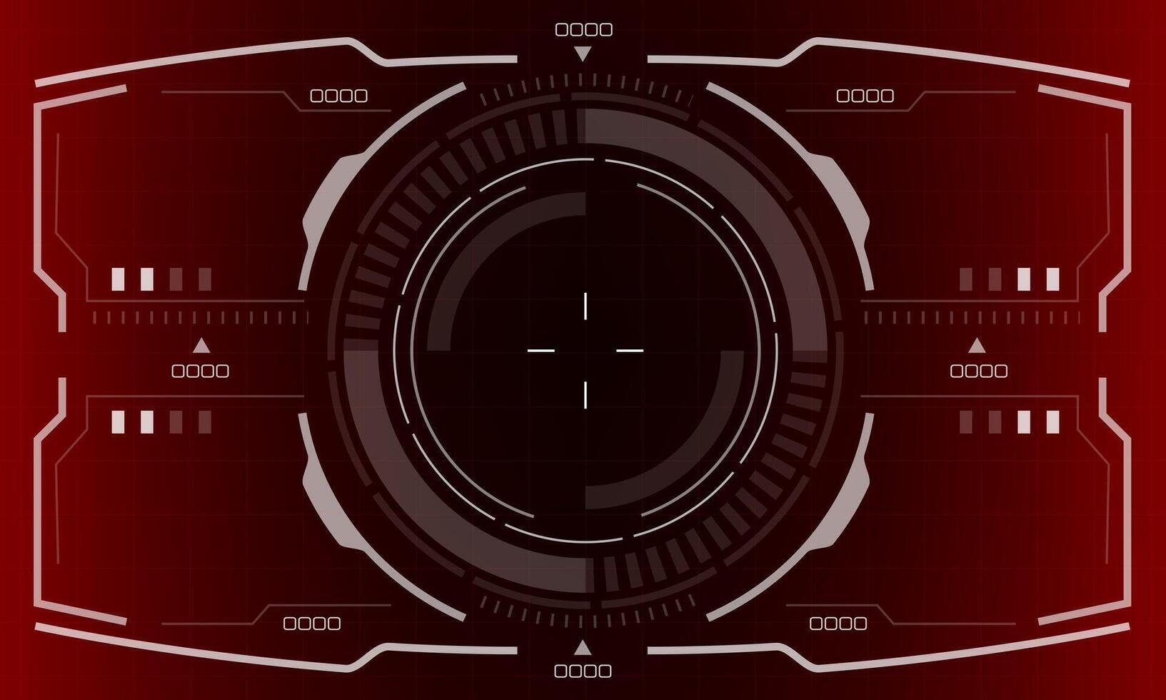 HUD sci-fi interface screen view white circular geometric design virtual reality futuristic technology creative display on red vector Pro Vector