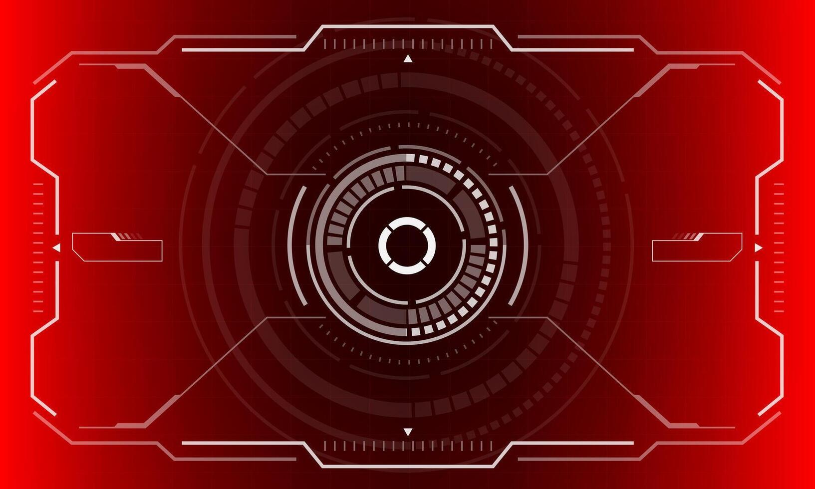 HUD sci-fi interface screen view white circular geometric design virtual reality futuristic technology creative display on red vector Pro Vector