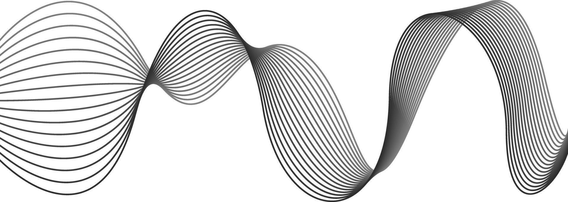 Abstract wavy curve grey gradient lines isolated on transparent background. Modern vector background