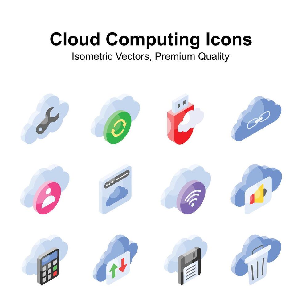 Cloud computing isometric vectors set isolated on white background Pro Vector