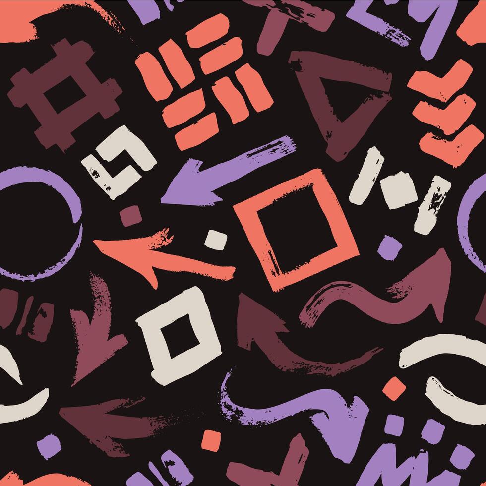 Brush geometric figures pattern. Seamless print of abstract brush strokes with irregular shapes. Modern scribble texture Pro Vector