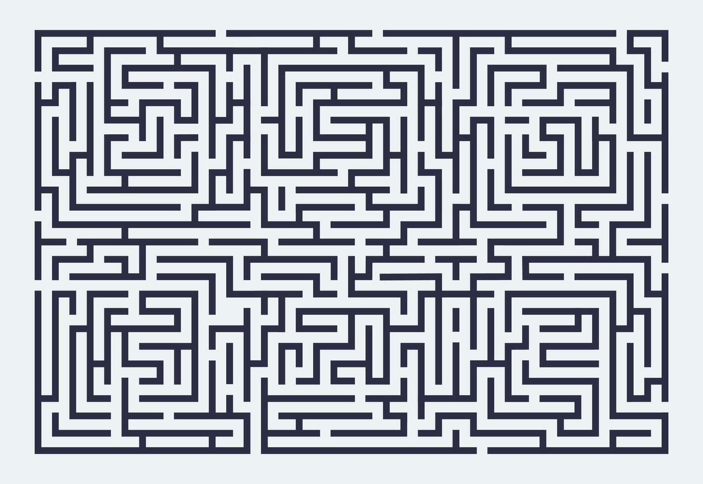 Rectangle maze. Labyrinth with square paths and complicated riddles, maze game with lost direction and way out. Vector illustration Pro Vector