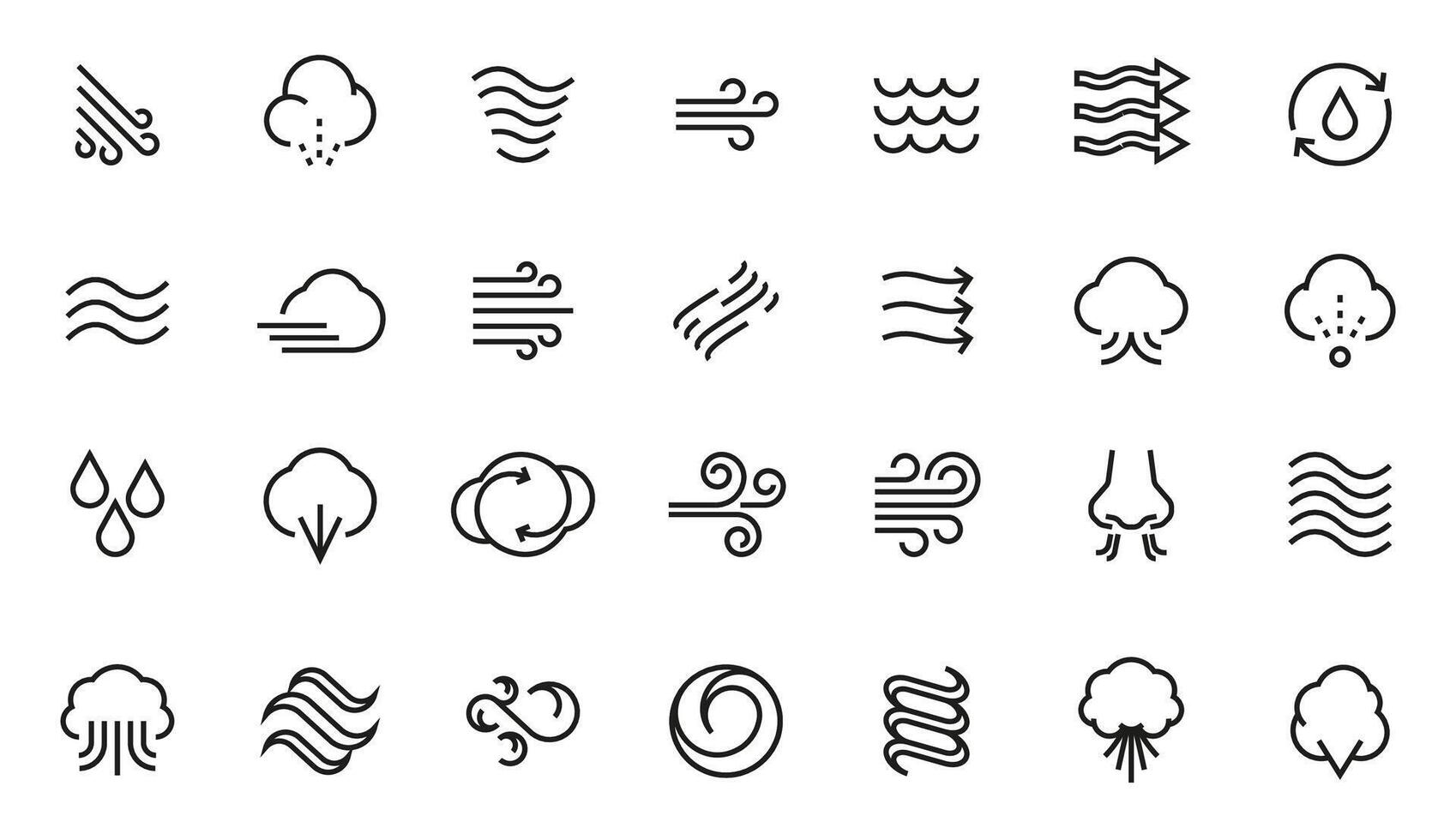 Wind icons. Thin tornado stream line blizzard hurricane zephyr wind elements, flat abstract swirls and flow for logo design. Vector isolated set Pro Vector