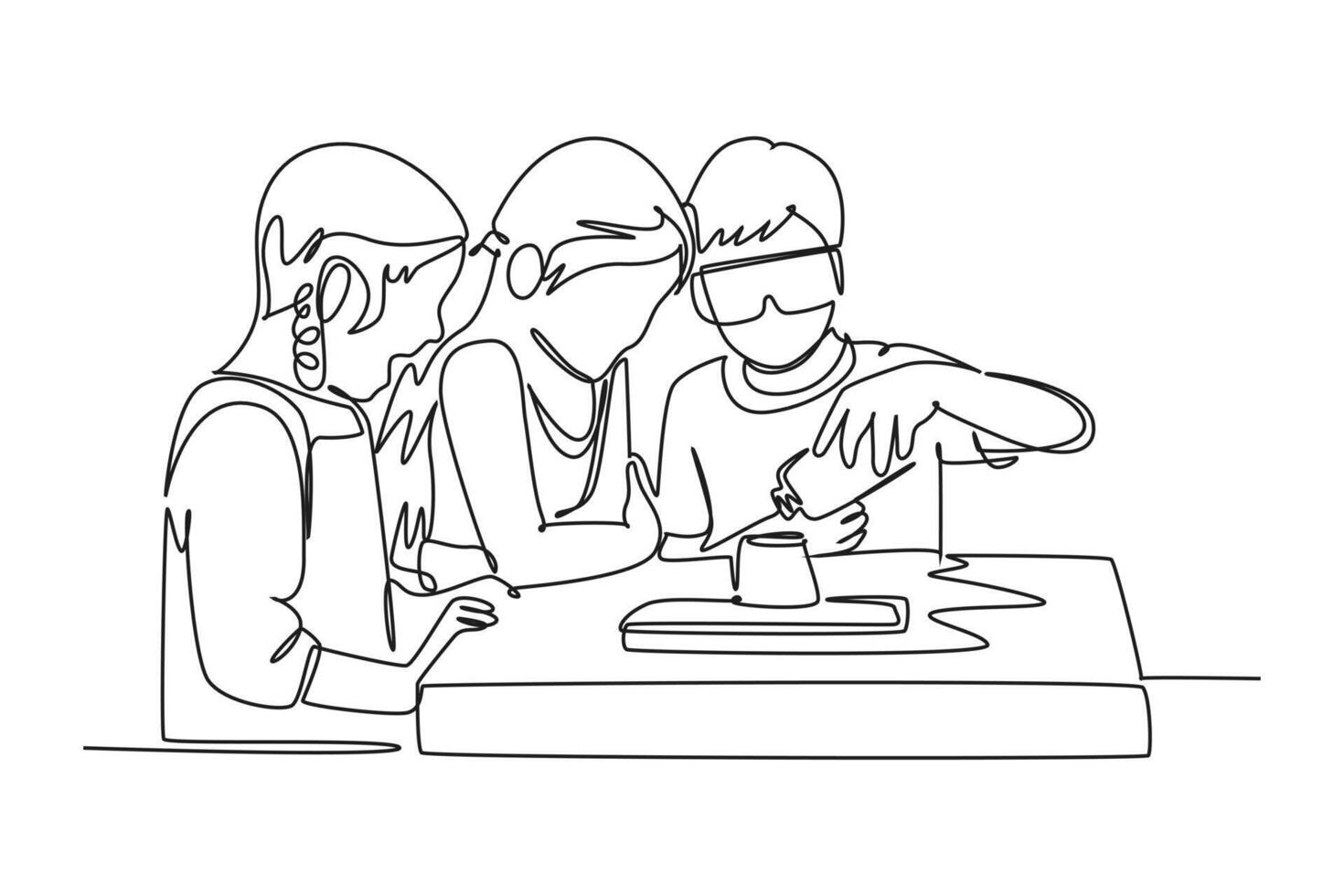 Continuous one line drawing Concept of studying in class and lab. Doodle vector illustration. Pro Vector
