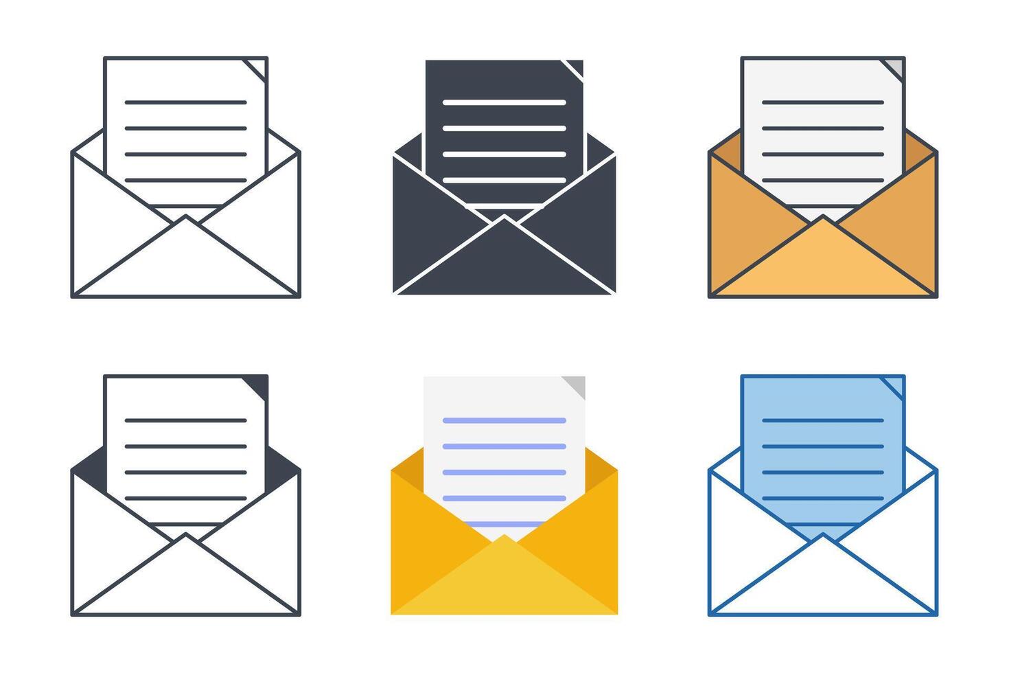 Email with Document icon collection with different styles. Mail envelope symbol vector illustration isolated on white background Pro Vector