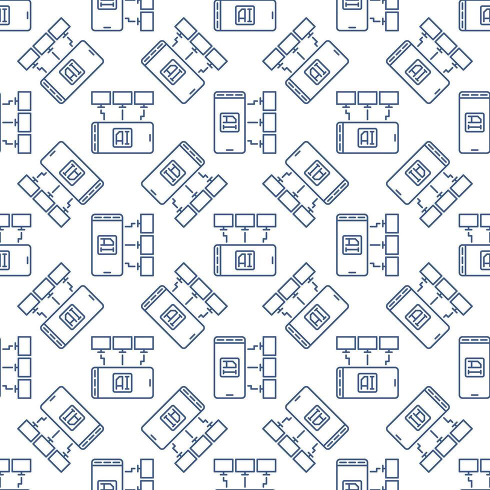 Computers with Artificial Intelligence Smartphone vector AI Technology outline seamless pattern Pro Vector