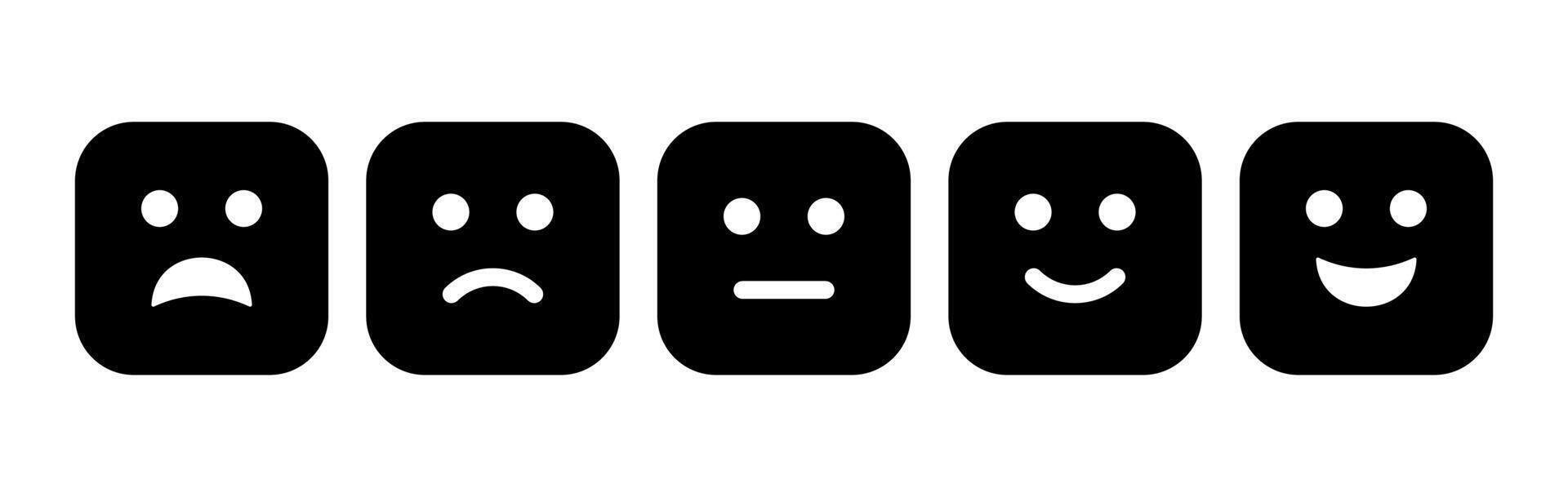 Feedback of Satisfaction Rate Level Form with Emoticons Square Emoticon. Excellent Good Average Sad Bad. Feedback user icon experience. Free Vector