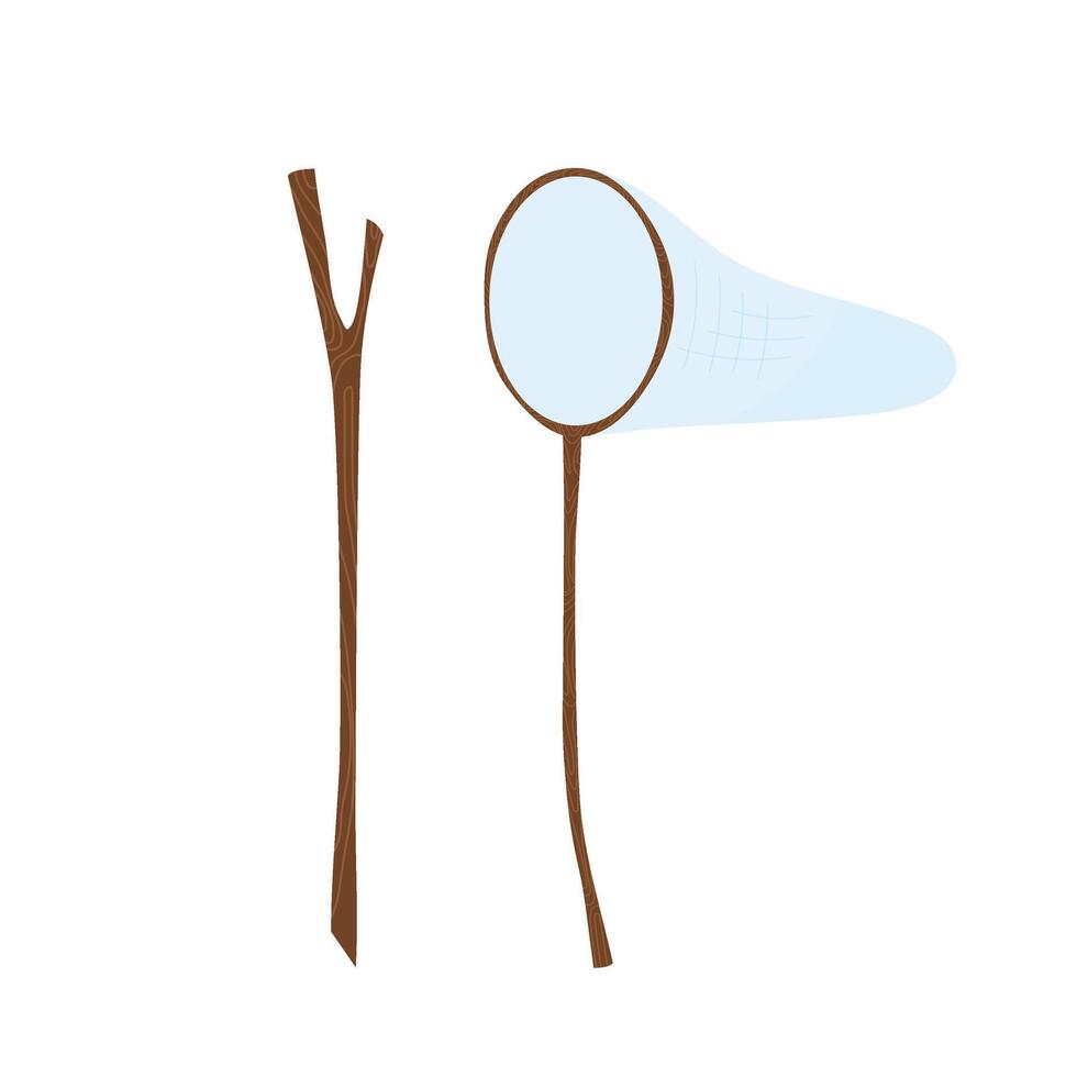Net. A net for catching butterflies and other insects on a white background. Vector illustration in flat style. Spring decor. Pro Vector