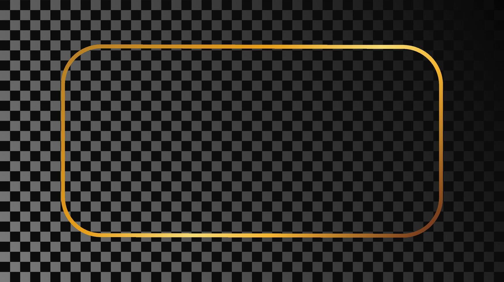 Gold glowing rounded rectangular frame isolated on dark background. Shiny frame with glowing effects. Vector illustration. Pro Vector