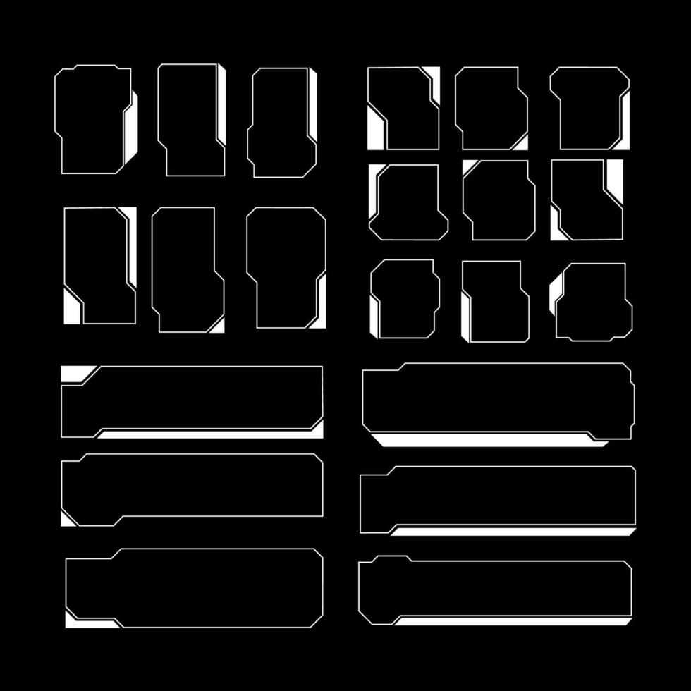 Futuristic interface ui elements. Holographic hud user interface elements, high tech bars and frames. Hud interface icons vector illustration set. rectangular shape borders Pro Vector
