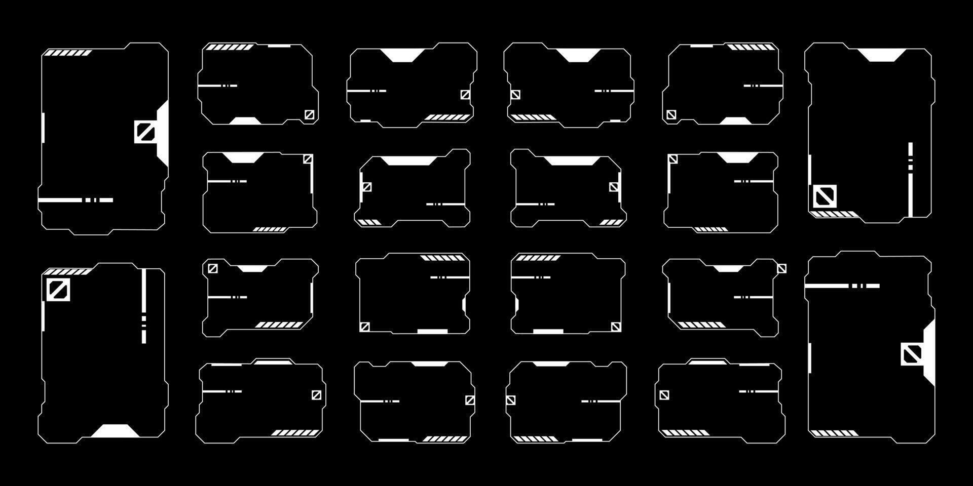 Futuristic interface ui elements. Holographic hud user interface elements, high tech bars and frames. Hud interface icons vector illustration set. rectangular shape borders Pro Vector
