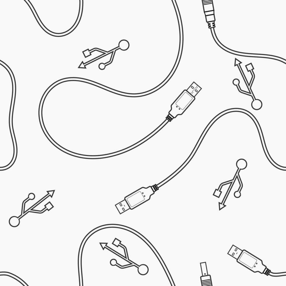 Editable Outline Style USB Cable Vector Illustration Seamless Pattern for Creating Background and Decorative Element of Computer Related Design Pro Vector