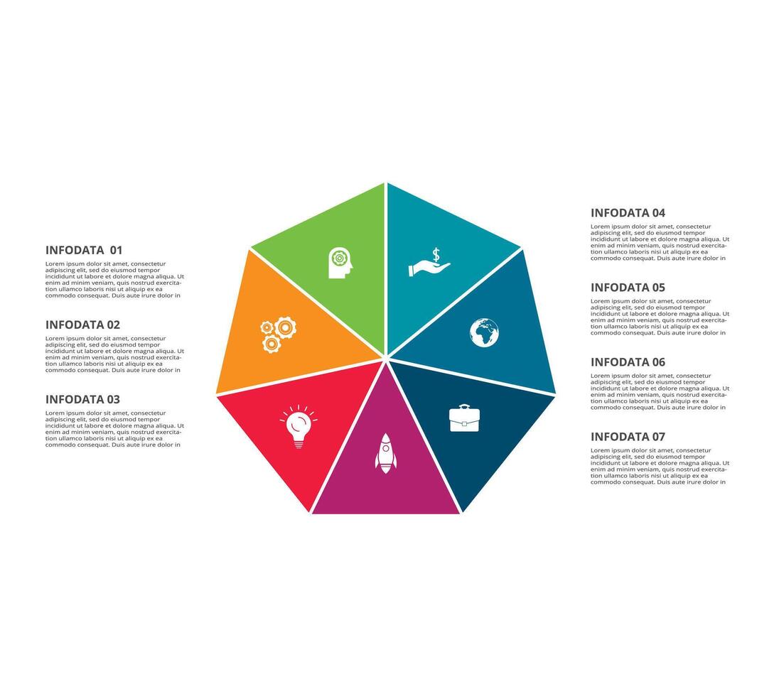 Circle elements of graph, diagram with 7 steps, options, parts or processes. Template for infographic, presentation. Pro Vector