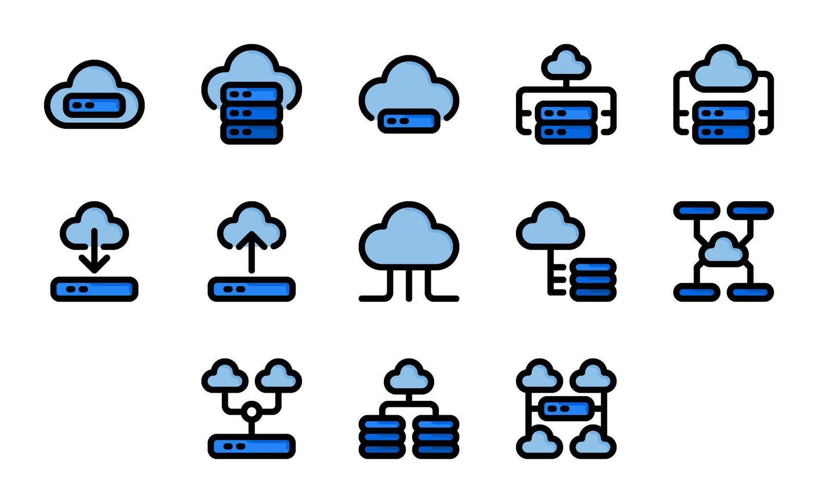 Cloud storage icon set, for technology, applications, artificial intelligence, computers and information systems Pro Vector