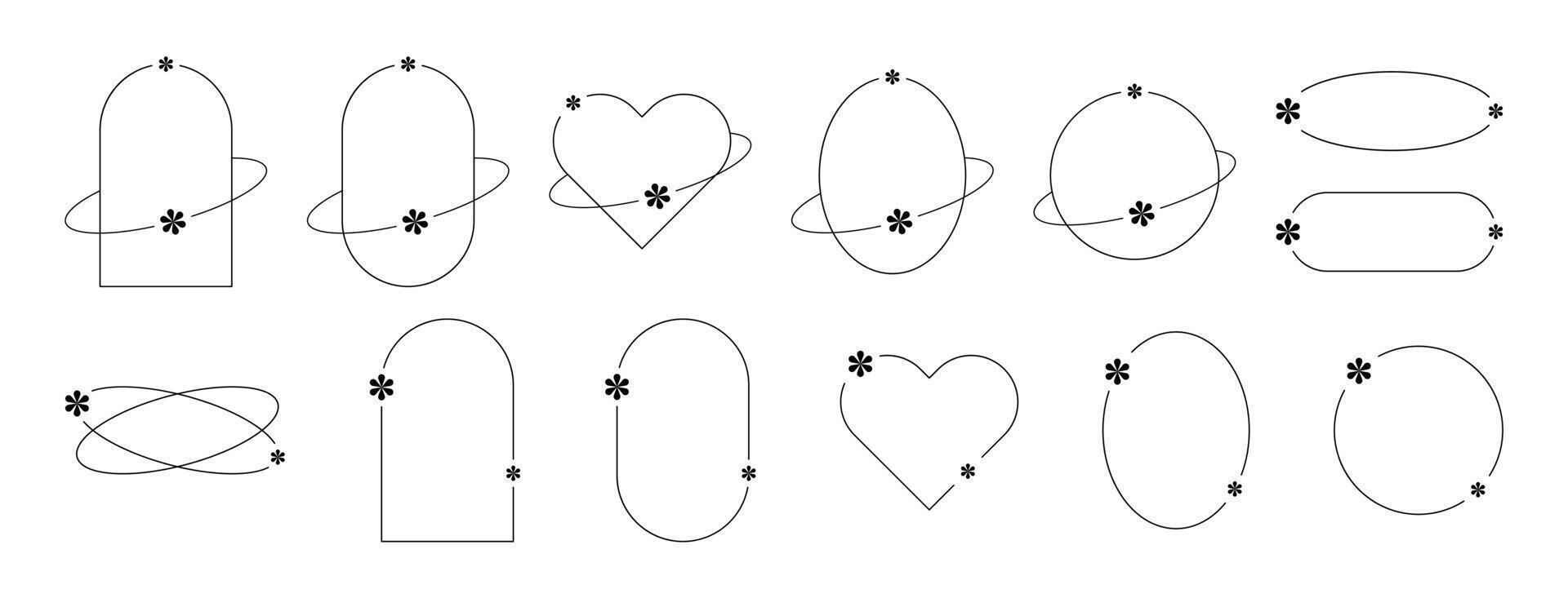 Aesthetic frames with y2k elements and aura. Borders with decorations with flowers. Collection of vector isolated illustrations on a white background. Pro Vector