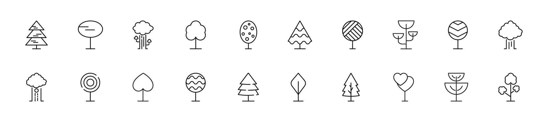 Collection of thin line icons of trees. Linear sign and editable stroke. Suitable for web sites, books, articles Pro Vector