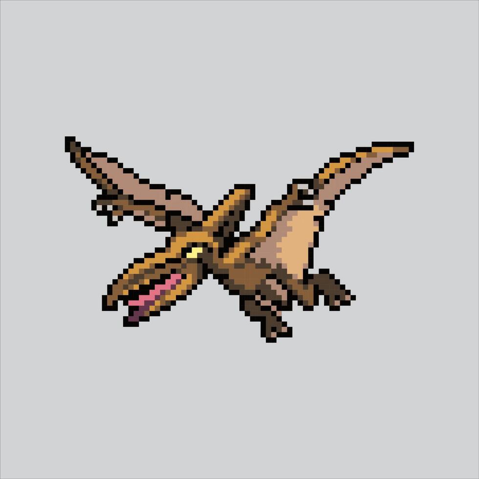 Pixel art illustration Pterodactyl. Pixelated Dinosaur. Pterodactyl flying dinosaur pixelated for the pixel art game and icon for website and video game. old school retro. Pro Vector