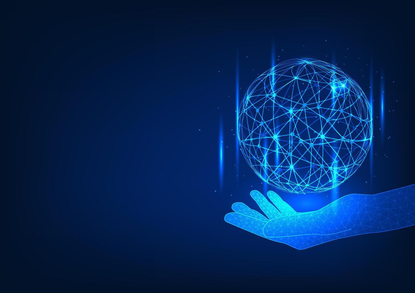 Processor technology at hand Shows the collection of data from networks from around the world and processes it to other operating systems. It's like a mechanical brain that controls the work. Pro Vector