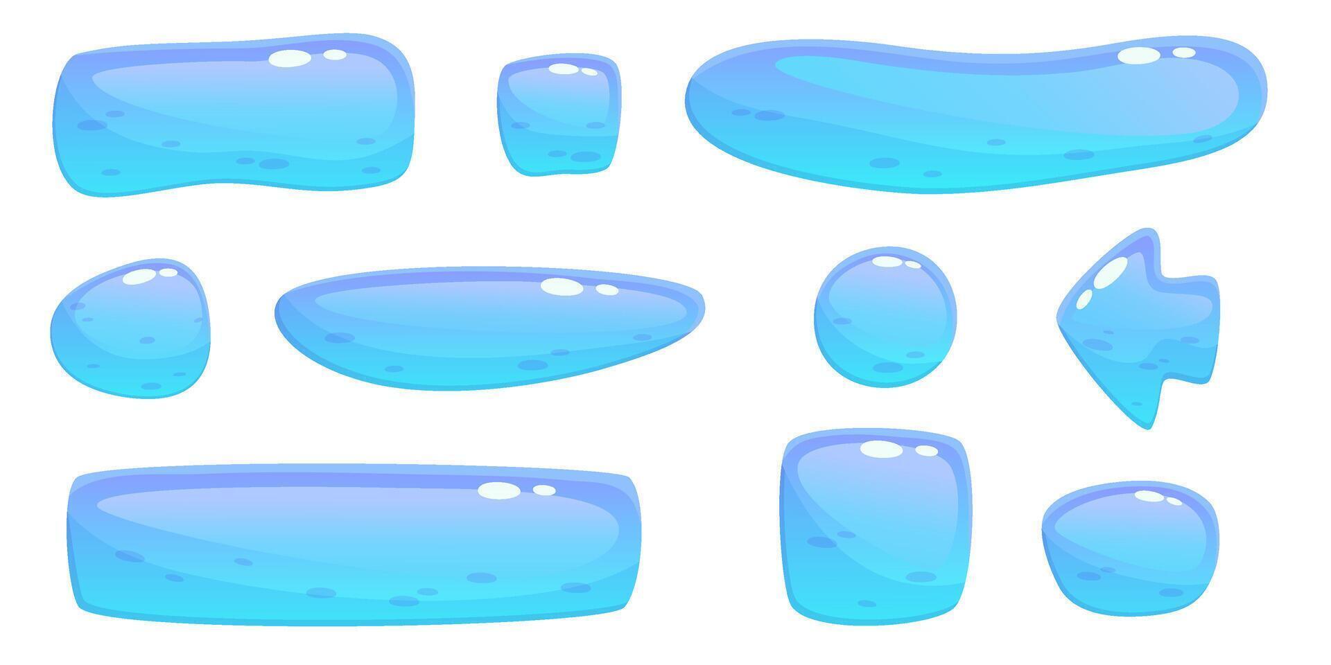Game water Button Set UI. Aqua Blue Button kit element. Vector Cartoon Illustration. Game ui for app and menu. Pro Vector