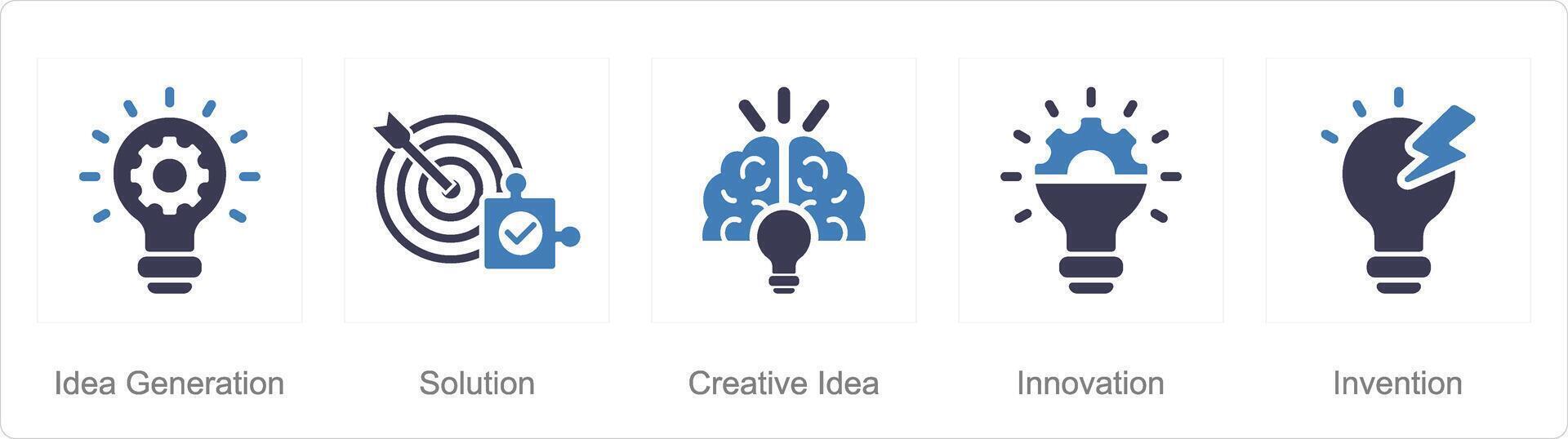 A set of 5 Idea icons as idea generation, solution, creative idea Pro Vector