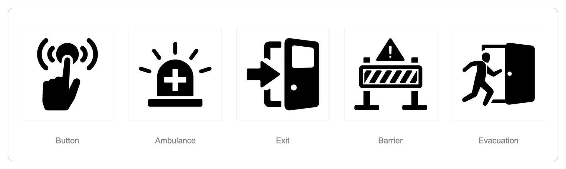 A set of 5 Emergency icons as button, ambulance, exit Pro Vector
