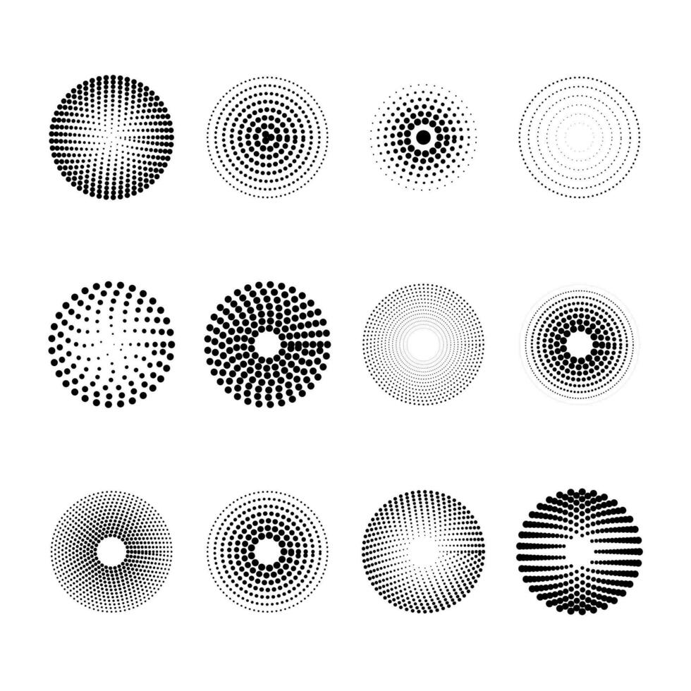 Abstract circles from dots fading to the center. Set of point spray or brush vector objects on a white background Pro Vector