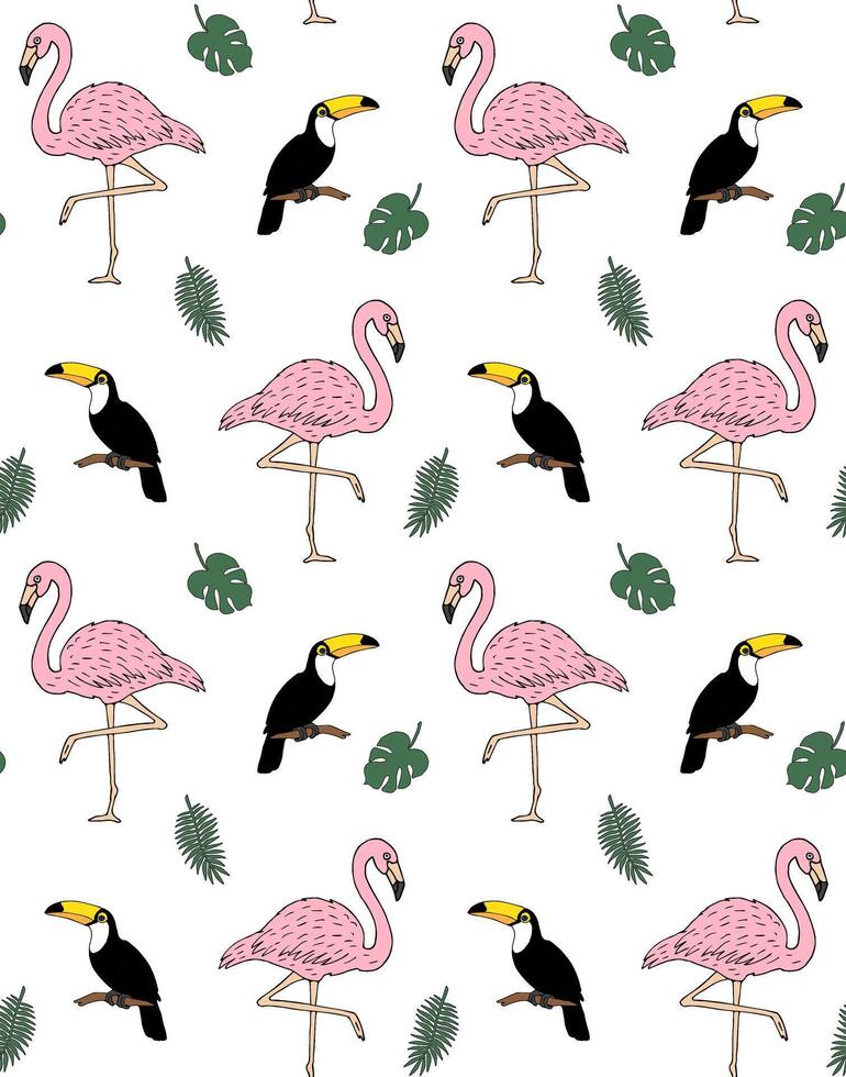 Vector seamless pattern of flamingo and toucan Pro Vector