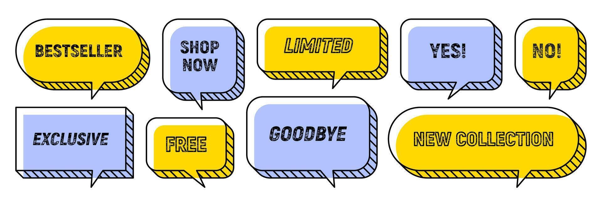 Memphis speech bubbles, vector of dialogue clouds Pro Vector