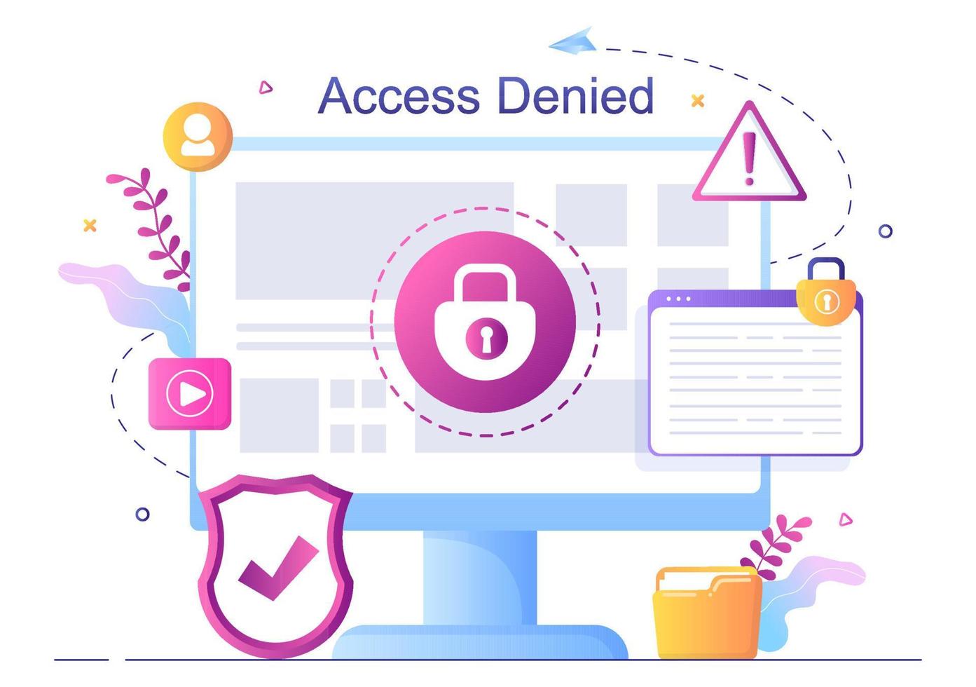 Login Access Denied Vector Illustration. System Refuses Password, Error and Entry to Computer Device Showing user does not have Permission for Website or Mobile Development Pro Vector