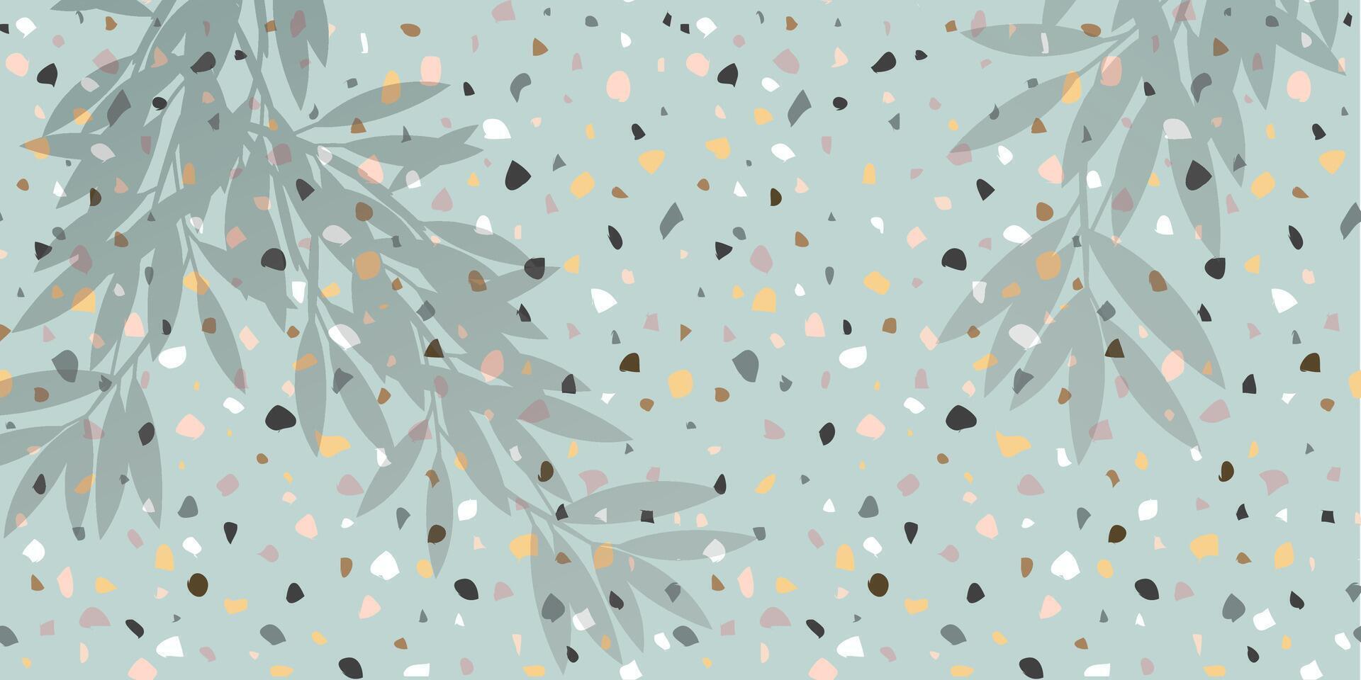 Venetian style terrazzo tile flooring plus a gray shadow layer of natural leaves tree branch. Vector background Pro Vector