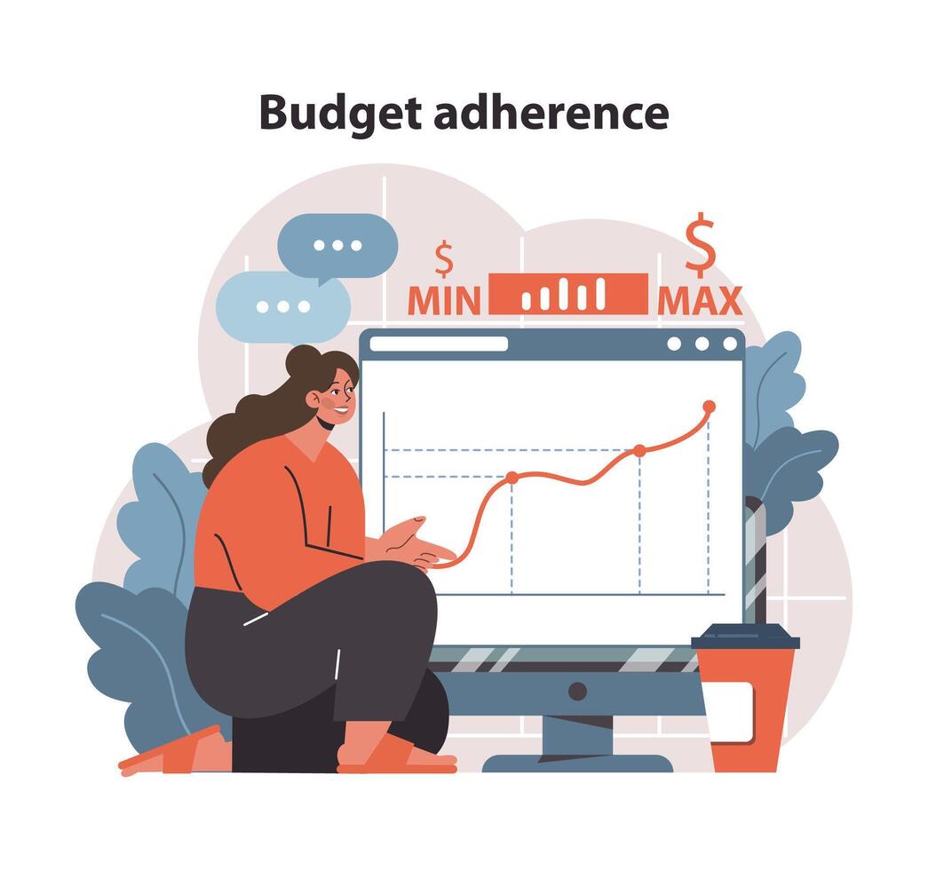 Budget Management in action. Analyzing financial graphs for project cost control. Pro Vector